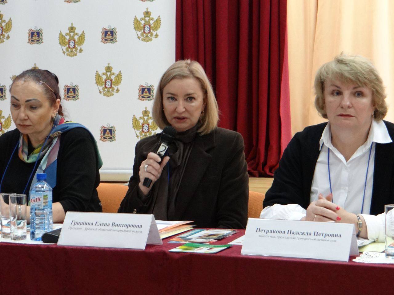Президент Брянской областной нотариальной палаты Елена Гришина выступила с докладом о важной роли нотариата в защите имущественных прав детей.